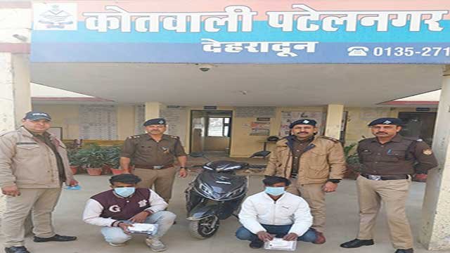 माननीय मुख्यमंत्री, उत्तराखंड सरकार के ड्रग्स फ्री देवभूमि 2025 के तहत जनपद को नशा मुक्त करने व नशा तस्करों के विरुद्ध देहरादून पुलिस द्वारा चलाये जा रहे अभियान को सफल बनाने के तहत कोतवाली पटेलनगर पुलिस द्वारा दिनांक 30-12-2023 को मण्डी के पीछे चक्की टोला खाली प्लॉट से 02 नफर अभियुक्त 1-सरोवर पासवान पुत्र मुक्ति पासवान निवासी 494 खुडबुडा मौहल्ला कांवली रोड थाना कोतवाली नगर जनपद देहरादून 2-विकास पुत्र देवनाथ शाह निवासी C/0 संजय निकट ईदगाह थाना कैंट जनपद देहरादून को गिरफ्तार किया गया। गिरफ्तार अभियुक्त गणो के कब्जे से अलग-अलग कुल 10.42 ग्राम स्मैक व 05.13 ग्राम कोकीन व घटना मे प्रयुक्त इलैक्ट्रिक स्कूटी सं0-WE04901 (Joy Bike) बरामद की गई। अभियुक्त के विरुद्व थाना पटेलनगर पर NDPS Act के तहत अभियोग पंजीकृत किया गया। बरामद माल के सम्बन्ध मे अभियुक्त गणो से पूछताछ की जा रही है । अभियुक्त गणो को आज समय से माननीय न्यायालय के समक्ष पेश किया जा रहा है ।