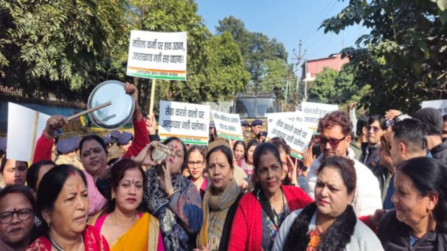 मंगलवार को पुलिस मुख्यालय की ओर बढ़ते प्रदर्शनकारियों को सुभाष रोड पर भारी पुलिस बल ने बेरिकेडिंग लगाकर रोक दिया। आगे बढ़ने पर पुलिस और प्रदर्शनकारियों के बीच धक्का-मुक्की हुई। इसी बीच महिला कांग्रेस की प्रदेश अध्यक्ष ज्योति रौतेला और प्रदेश उपाध्यक्ष आशा मनोरमा डोबरियाल शर्मा ने बैरिकेडिंग पर चढ़कर नारेबाजी की और राज्य सरकार का पुतला दहन किया।