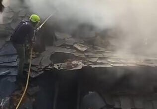 लकड़ी के मकान में भीषण आग, कड़ी मशक्कत के बाद बुझाई आग