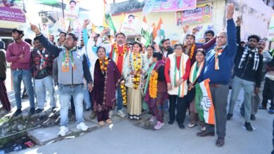 कांग्रेस के मेयर प्रत्याशी विरेंद्र पोखरियाल ने पार्षद प्रत्याशियों संग महारैली निकालकर किया शक्ति प्रदर्शन