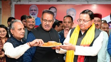 दिल्ली जीत पर मुख्यमंत्री धामी ने कार्यकर्ताओं को जलेबी खिलाकर दी जीत की बधाई