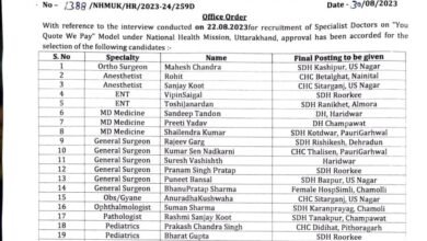 देहरादून। उत्तराखण्ड में स्पेशलिस्ट और सुपर स्पेशलिस्ट डॉक्टरों की पहली तैनाती कर दी गई है। डॉक्टरों को ‘यू कोट-वी पे‘…