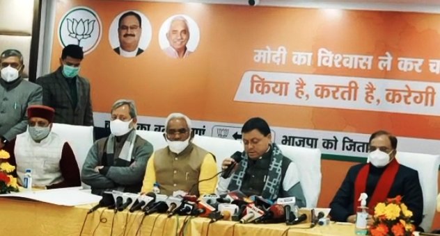 उत्तराखंड भाजपा ने एकजुटता का संदेश देते हुए देहारादून के निजी होटल में आयोजित पत्रकार वार्ता में चुनावी अभियान के अंतिम चरण की शुरुआत की | इस कार्यक्रम में प्रदेश भाजपा सरकार के कार्यकाल और मोदी सरकार के सहयोग को सीएम धामी ने प्रस्तुत करते हुए कहा कि 2014 से लेकर अब तक और 2017 से लेकर 2022 तक केंद्र की मोदी सरकार ने करीब एक लाख करोड़ से अधिक की योजनाएं उत्तराखंड के लिए स्वीकृत की हैं। उनमें से कई पूरी हो चुकी हैं। कई पर काम चल रहा है। वहीं देहरादून और हल्द्वानी में बारी-बारी से राज्य को 18 हजार करोड़, 17.5 हजार करोड़ की सौगात दी। उन्होंने कहा कि चार धाम की आल वेदर रोड हो या भारतमाला सड़क परियोजना, ऋषिकेश कर्णप्रयाग रेलवे लाइन हो या टनकपुर-बागेश्वर रेल लाइन, बद्री केदार धामों में हुए विकास कार्य हो या पर्यटन वृद्धि को लेकर दुरुस्त की गयी कनेक्टिविटी | सूबे के आधारभूत ढांचे में सुधार के लिए किए जा रहे ऐसे तमाम कार्य डबल इंजन की सरकार का बेहतरीन उदाहरण हैं | देहरादून के एयरपोर्ट की क्षमता बढ़ाने के साथ प्रदेश में नए हवाई मार्ग चिन्हित कर उड़ान शुरू की गईं। वहीं कई अन्य जगहों पर हवाई सेवा की शुरुआत होने जा रही है।