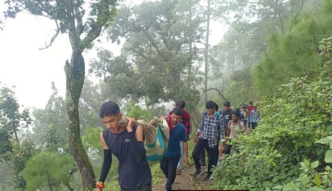 आदर्श चंपावत में डोली में ढोए जा रहे हैं मरिज15 किमी पैदल चल बीमार बुजुर्ग महिला को सड़क तक लाए युवा