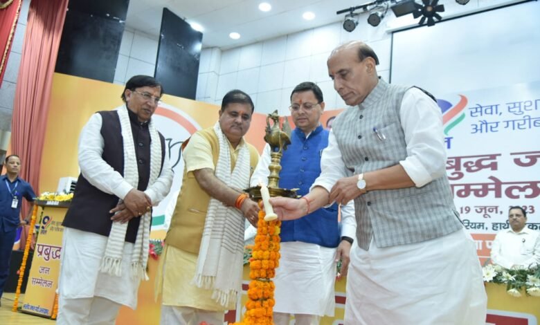 इस दौरान सम्मेलन को संबोधित करते हुए मुख्यमंत्री पुष्कर सिंह धामी में कहा आप सभी लोग समाज में बेहद महत्वपूर्ण व्यक्ति हैं जिन्हें लोग ध्यान से सुनते हैं । हमारी इच्छा है कि विगत 9 वर्षों की मोदी सरकार एवं प्रदेश की भाजपा सरकार की उपलब्धियों को आप सभी जनता के बीच लेकर जाए और चर्चा करें। उन्होंने कहा मोदी जी के मार्गदर्शन में देश की तरह उत्तराखंड भी विकास के नए-नए आयामों को प्राप्त कर रहा है । हम प्रदेश में कठोरतम धर्मांतरण एवं नकल कानून लेकर आए महिला और राज्य आंदोलनकारियों के लिए नौकरियों में आरक्षण लेकर आए । इसी तरह कड़े भू कानून एवं समान नागरिक संहिता को लागू करने को लेकर हम निर्णायक स्थिति में पहुंच गए हैं । कार्यक्रम में प्रदेश अध्यक्ष महेंद्र भट्ट ने 1.25 करोड़ देवभूमि एवं सैन्य भूमिवासियों की तरफ से रक्षा मंत्री का स्वागत किया ।