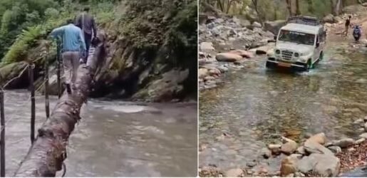 रुद्रप्रयाग के तोषी गांव में लकड़ी के पुल के सहारे आवागमन, हर रोज परेशानी और मौत से जूझ रहे ग्रामीणों , सेक्टर मजिस्ट्रेट को लकड़ी के ऊपर से पार करनी पड़ी नदी