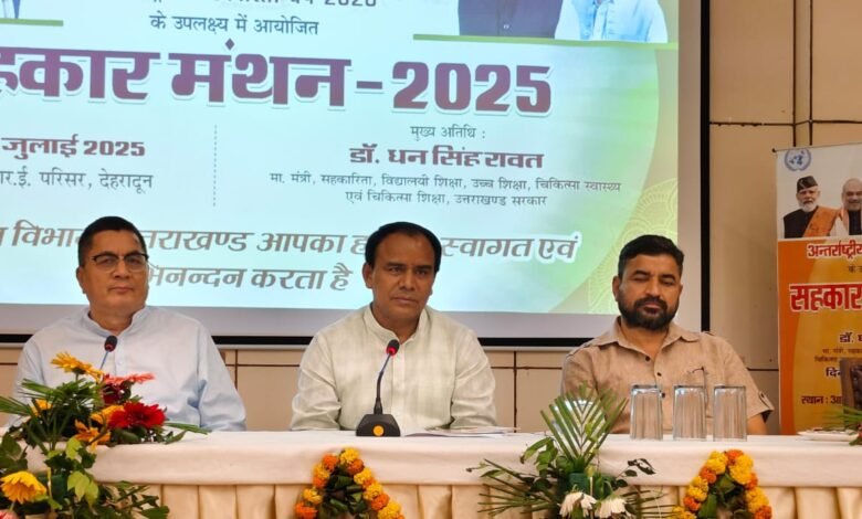 उत्तराखंड सहकारिता विभाग द्वारा आयोजित दो दिवसीय कार्यशाला “सहकार मंथन-2025” के समापन अवसर पर विभागीय मंत्री डॉ धन सिंह रावत ने कहा कि सहकारिता क्षेत्र में व्यापक सुधार को सहकारी अधिनियम, नियमों में बदलाव किया जायेगा ताकि सहकारी व्यवस्था को भविष्योन्मुखी व पारदर्शी बनाया जा सके।